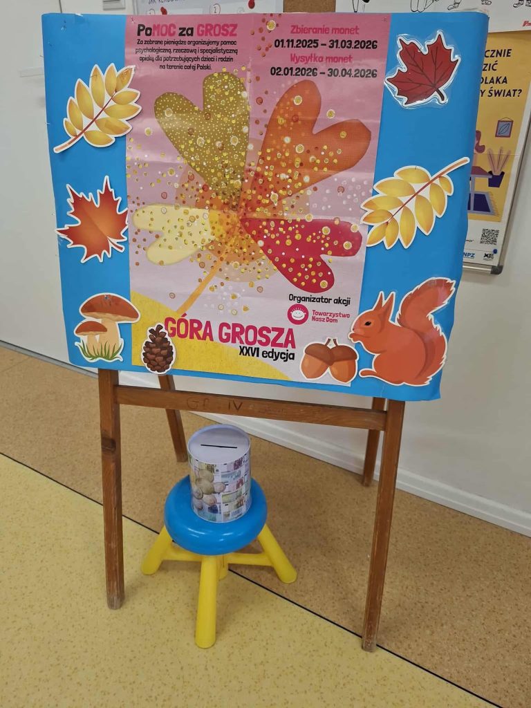 Zachęcamy do wrzucenia monet o nominałach: od 1 gr do 5 zł do specjalnego pojemnika, umieszczonego w holu przedszkola.