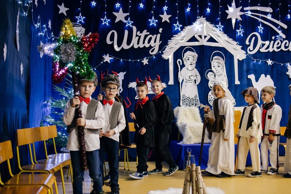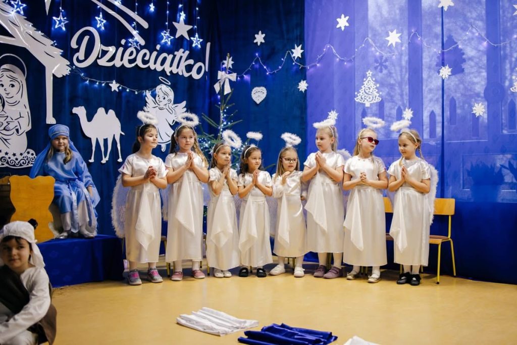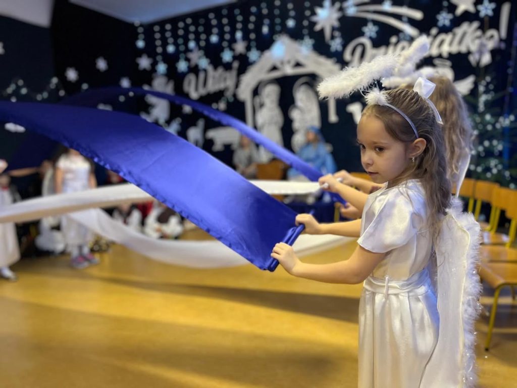 Dzieci w specjalnie przygotowanych kostiumach oraz w scenografii nawiązującej do Betlejem, przedstawiły sceny narodzin Jezusa Chrystusa. Przedszkolaki z dużym zaangażowaniem odtwarzały swoje role oraz prezentowały umiejętności recytatorskie i wokalne.🤩