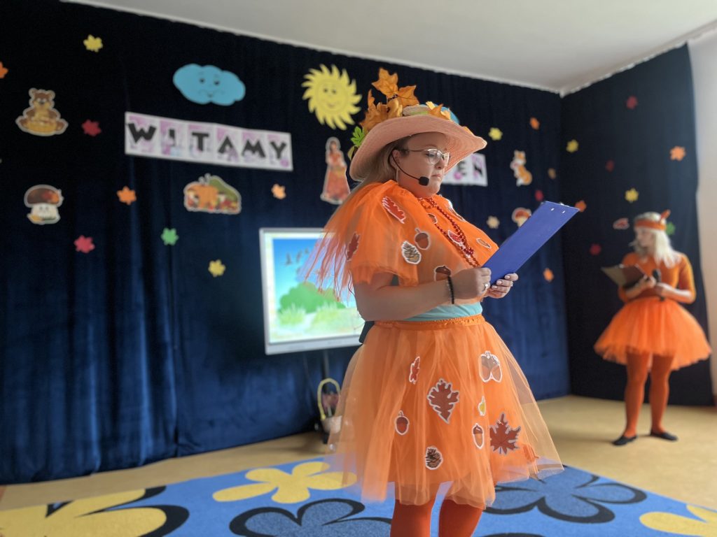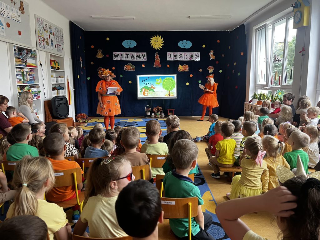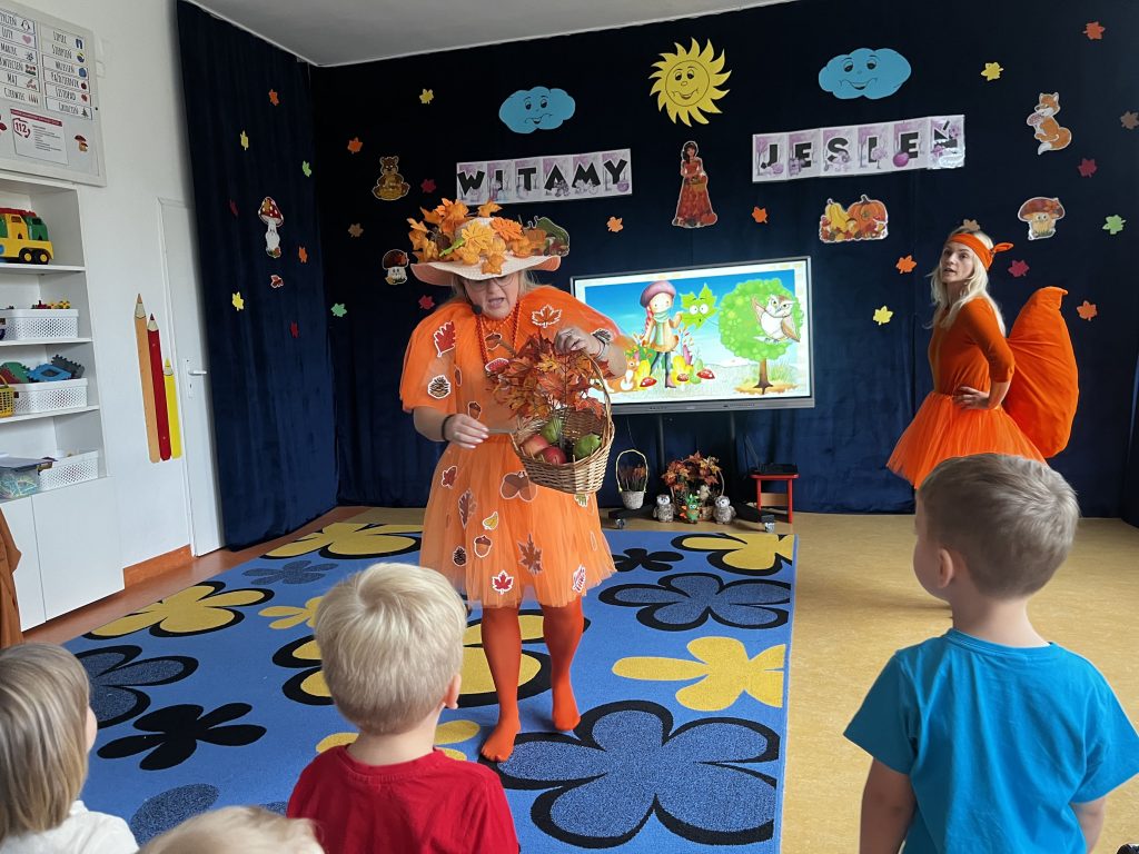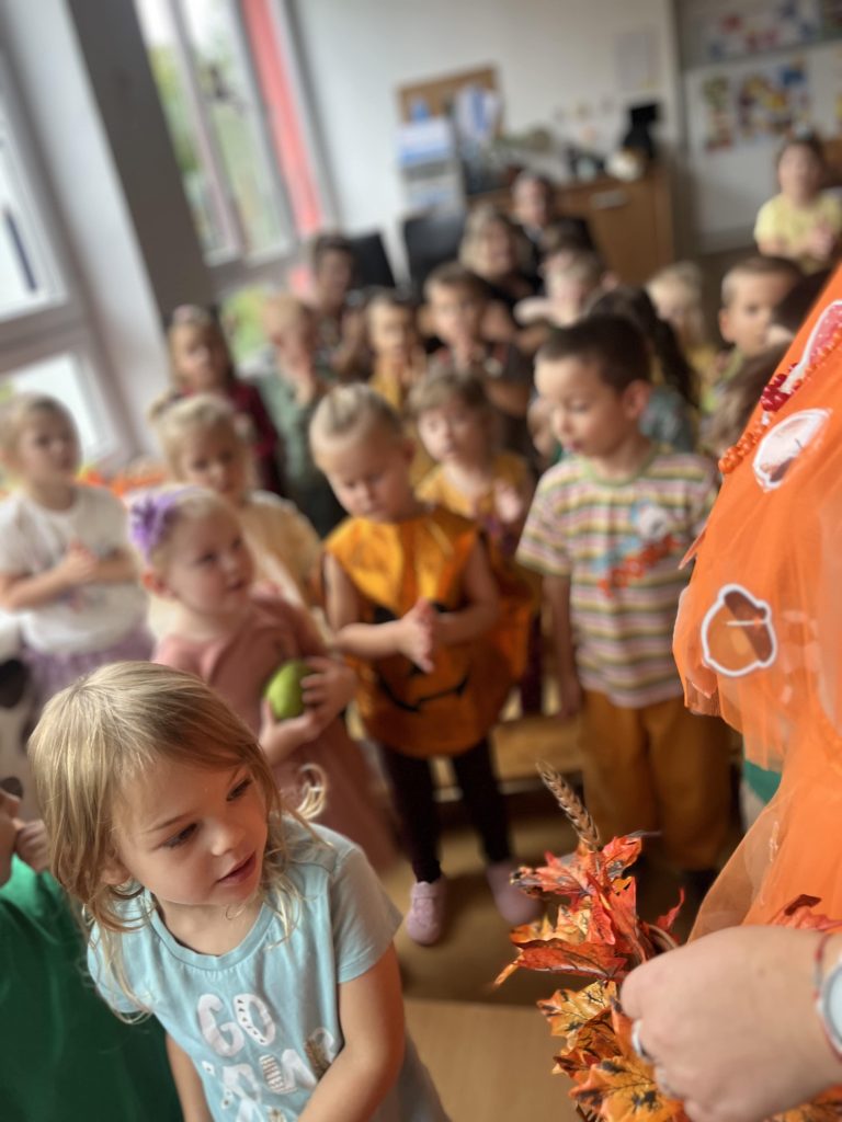 23 września przedszkolaki oraz dzieci z Żłobek Miejski nr 2 Skarżysko-Kamienna powitały nową porę roku, JESIEŃ!Dzisiaj dzieci przebrane były w piękne jesienne kolory i dumnie kroczyły do przedszkola wraz z zebranymi przez siebie darami. W naszych Jesiennych kącikach przyrody pojawiły się: kolorowe liście, kasztany, żołędzie i szyszki.😊Tego dnia towarzyszyły nam jesienne zabawy, piosenki oraz zagadki podczas przedstawienia, pt. „Jesienna bajka o listku, który chciał latać”, w którym wzięły udział Pani Małgorzata – Pani Jesień oraz Pani Agata – Wiewiórka.❤️ Obie Panie zachęciły wszystkie dzieci do czynnego udziału w przedstawieniu, co sprawiło im wielką radość.