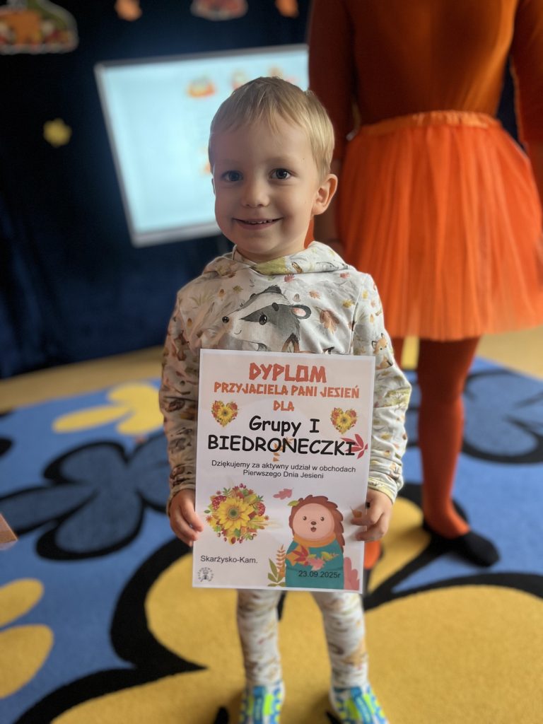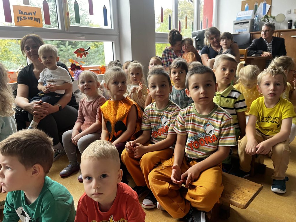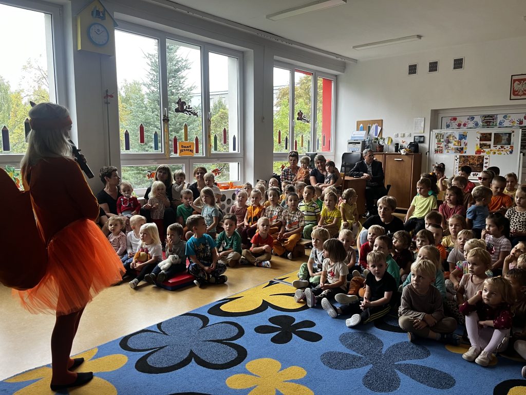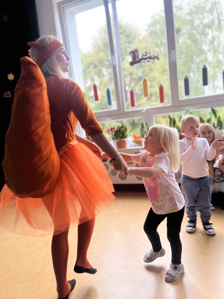 23 września przedszkolaki oraz dzieci z Żłobek Miejski nr 2 Skarżysko-Kamienna powitały nową porę roku, JESIEŃ!Dzisiaj dzieci przebrane były w piękne jesienne kolory i dumnie kroczyły do przedszkola wraz z zebranymi przez siebie darami. W naszych Jesiennych kącikach przyrody pojawiły się: kolorowe liście, kasztany, żołędzie i szyszki.😊Tego dnia towarzyszyły nam jesienne zabawy, piosenki oraz zagadki podczas przedstawienia, pt. „Jesienna bajka o listku, który chciał latać”, w którym wzięły udział Pani Małgorzata – Pani Jesień oraz Pani Agata – Wiewiórka.❤️ Obie Panie zachęciły wszystkie dzieci do czynnego udziału w przedstawieniu, co sprawiło im wielką radość.